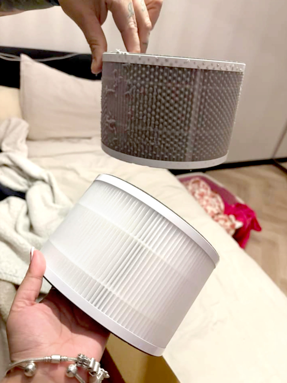 Deze luchtreiniging staat in mijn slaapkamer en zorgt ervoor dat ik veel beter slaap , mijn neus niet meer dicht zit in de ochtend en veel minder stof in de kamer zit.