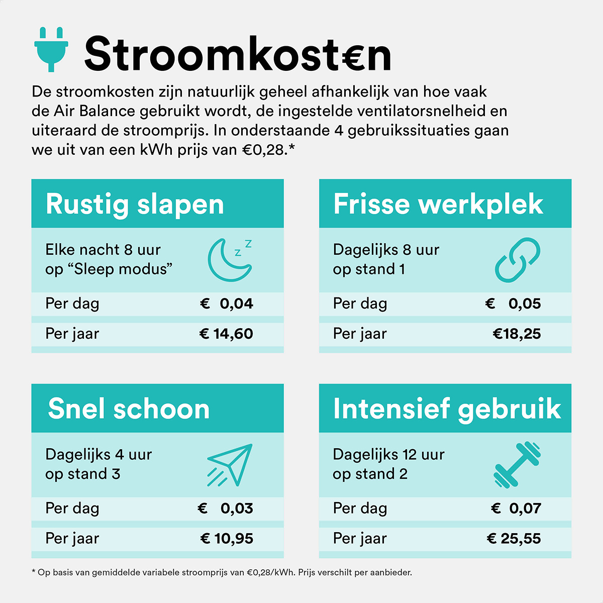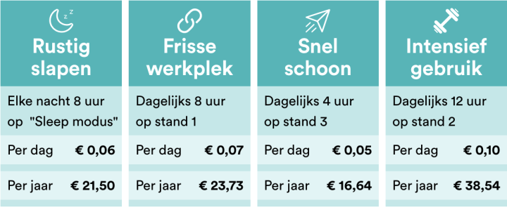 Het stroomverbruik van de Air Balance is erg laag dus je kunt deze makkelijk elke nacht lang gebruiken.