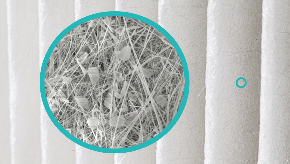 Het filter heeft een wat papierachtige structuur en is in de regel gemaakt van glasvezel of synthetische materialen. Deze vezels zijn kriskras met elkaar verweven en die onregelmatige structuur van elkaar overlappende vezels geeft een goede filterwerking.