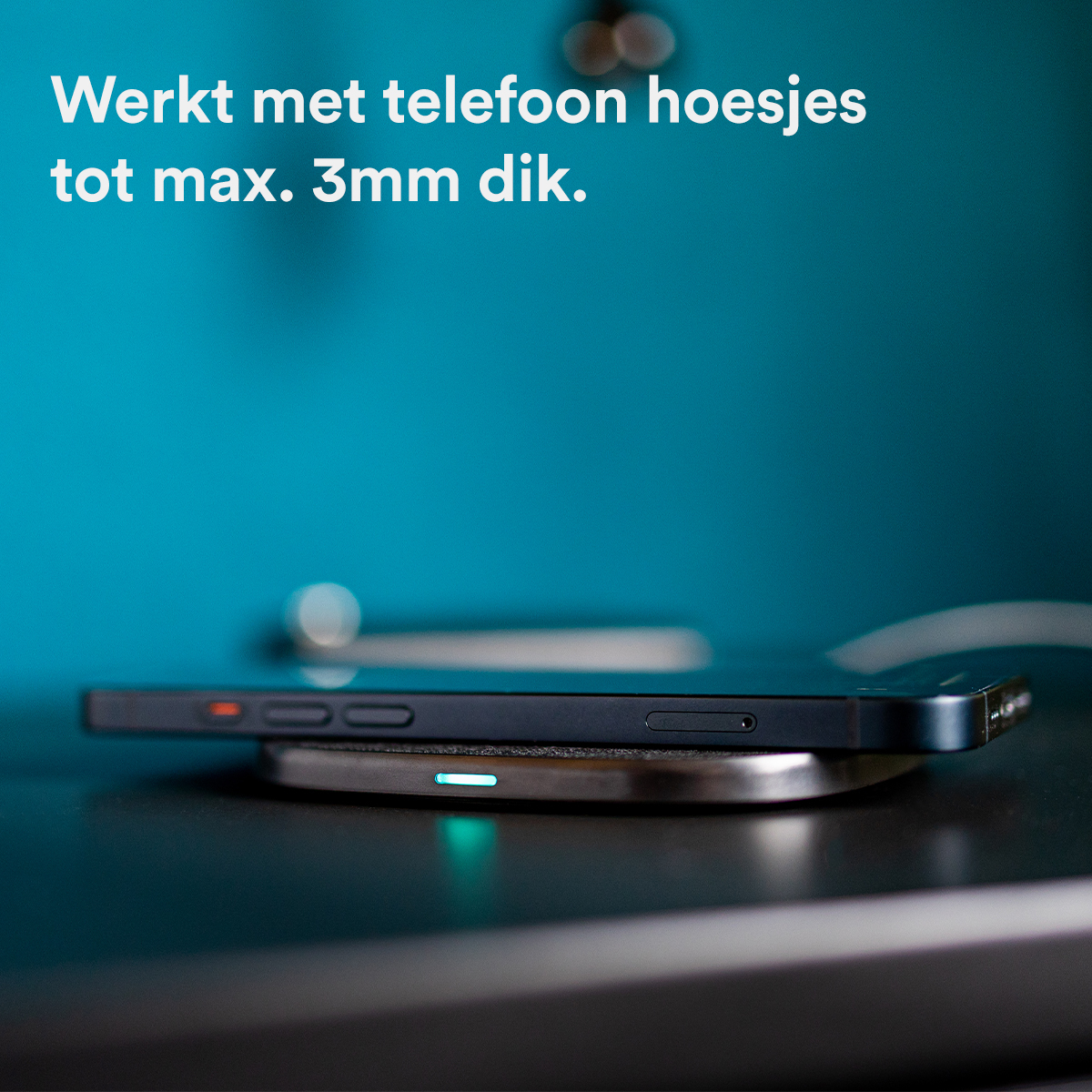 Veel draadloze opladers laden slecht op als er om de mobiele telefoon een kunststof hoesje zit. De Swift heeft hier geen moeite mee. Zelfs telefoons met een hoesje tot 3mm worden gewoon opgeladen.