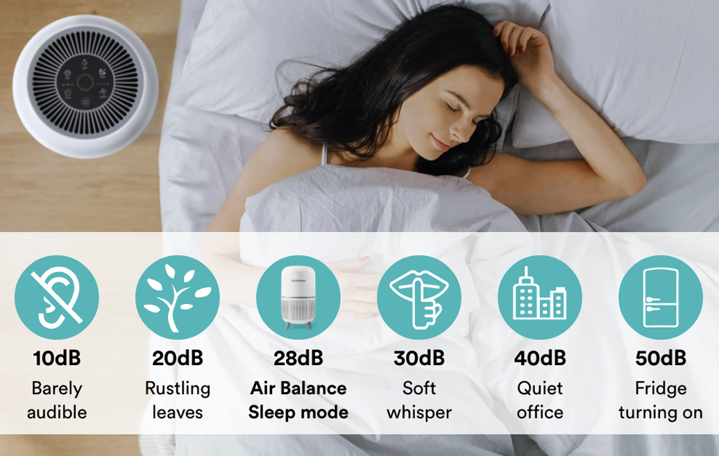 By filtering these allergens from the air, the Air Balance helps to reduce symptoms such as sneezing, shortness of breath, watery eyes or wheezing.