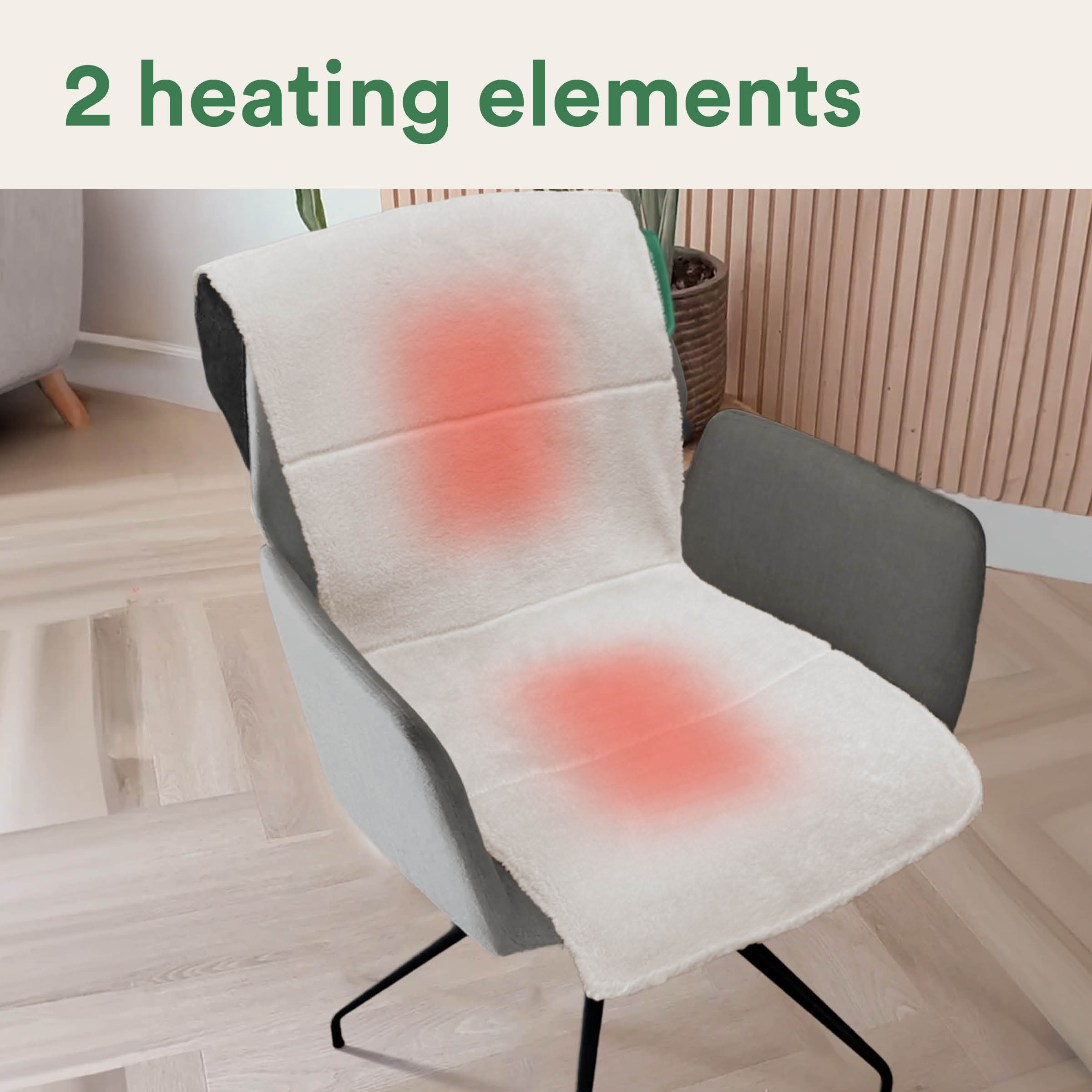 You can achieve an optimal heat experience by sitting close to the heating element. With thicker clothing it may take a little longer before you experience full warmth.